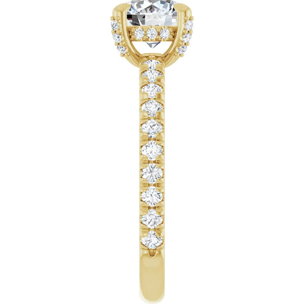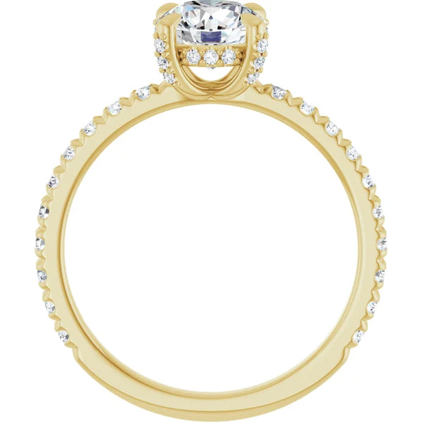 This stunning ring boasts a timeless round cut diamond, accented with shimmering side-stones for added brilliance. *Center stones are sold separately.