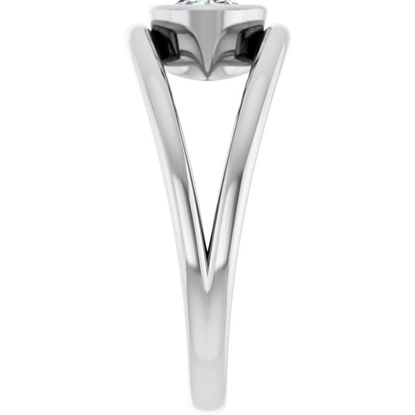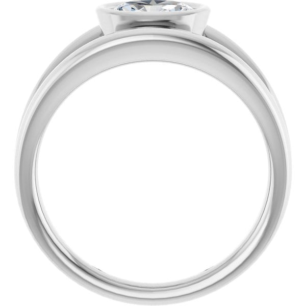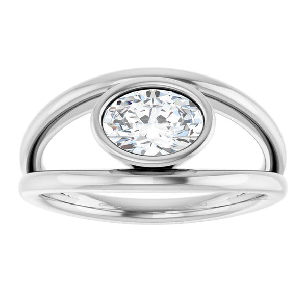 This radiant engagement ring can hold either an oval 3/4-carat (6x4) diamond or gemstone.