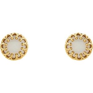 28503 / 14K White / Set / Round / Natural White Opal / Pair / 6 Mm / Friction / Friction Backs Included / Bezel / Polished / Natural Opal Cabachon Earrings With Backs
