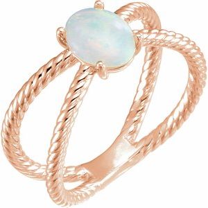 71933 / Ring / Set / 14K White / Natural White Opal / Oval / 8 X 6 Mm / Polished / Natural White Opal Criss-Cross Rope Ring