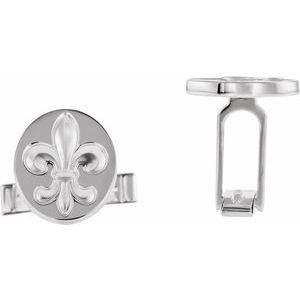 84126 / 14K White / Pair / Polished / Fleur De Lis Cuff Links