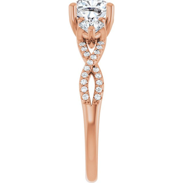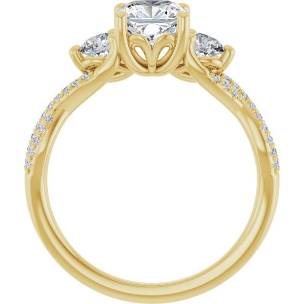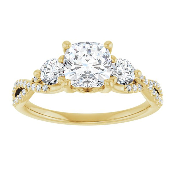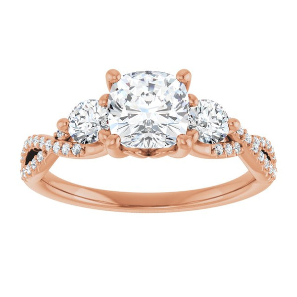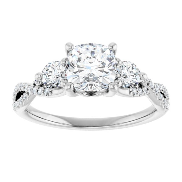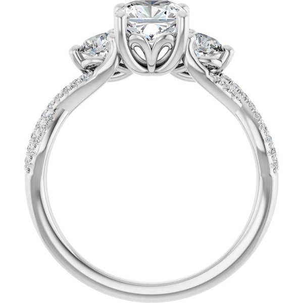 Three-Stone Infinity-Inspired Cushion Engagement Ring Mounting