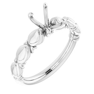 14K White 7x5 mm Emerald Sculptural-Inspired Engagement Ring Mounting