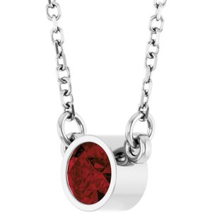 61134 / Necklace / Set / 14K White / Round / Natural Mozambique Garnet / 4 Mm / 16 In / Polished / Natural Mozambique Garnet Solitaire Necklace