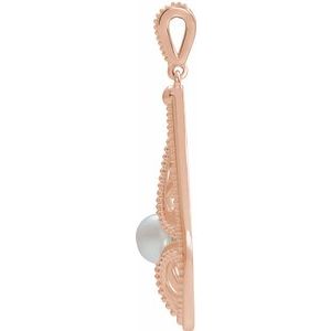 14K Rose Cultured White Freshwater Pearl Vintage-Inspired Pendant