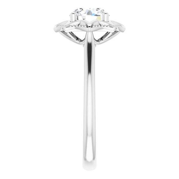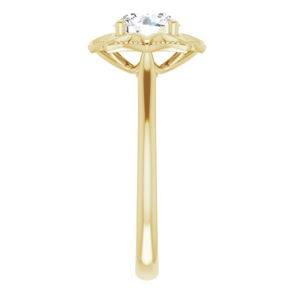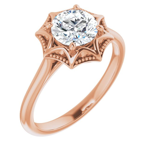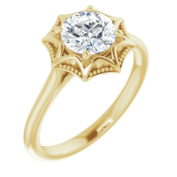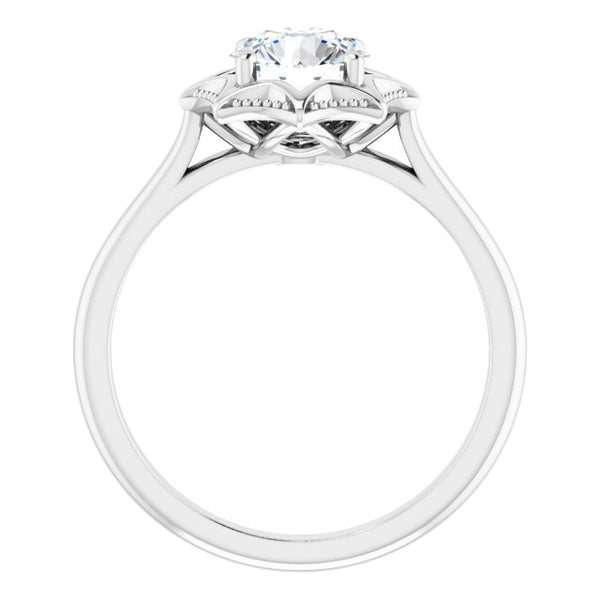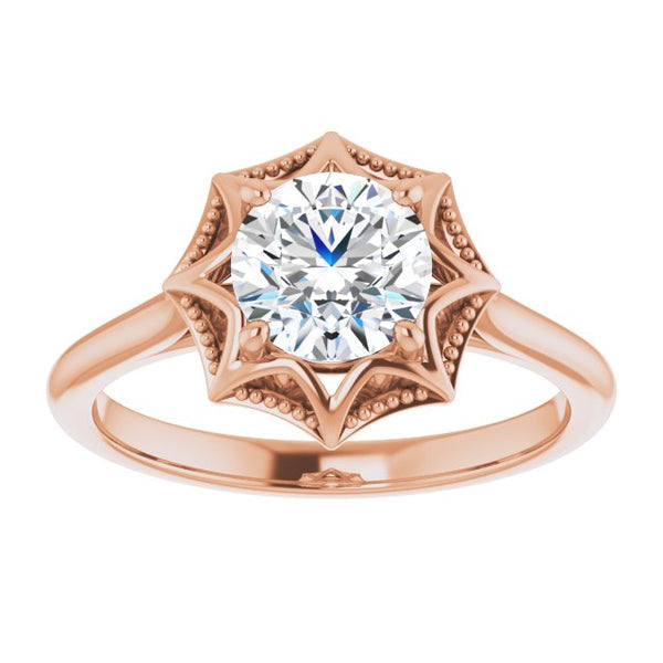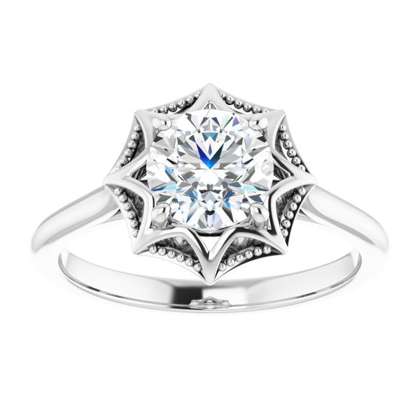 This gorgeous ring will give diamond halos a run for their money! The intricate detail of the sunburst design will work beautifully with any diamond or gemstone.