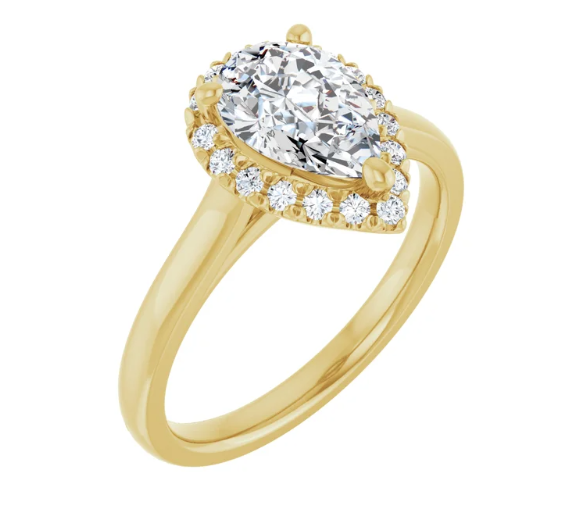 14K Yellow 9x6 mm Pear 1/6 CTW Natural Diamond Semi-Set Engagement Ring