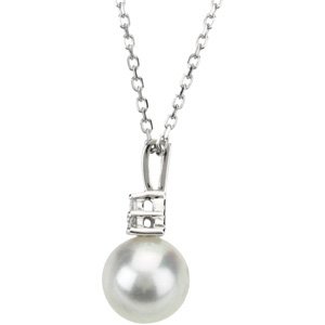 14K White Cultured White Freshwater Pearl & .06 CTW Natural Diamond 18" Necklace