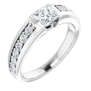 14K White 5x3 mm Emerald Accented Engagement Ring