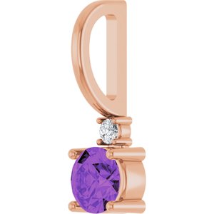 14K Rose Natural Amethyst & .015 CT Natural Diamond Charm/Pendant