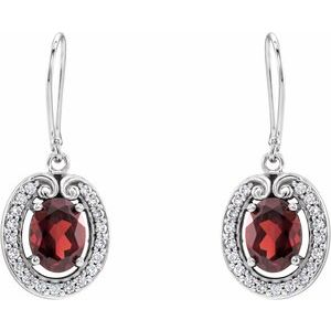 14K White Natural Mozambique Garnet & 3/8 CTW Natural Diamond Earrings
