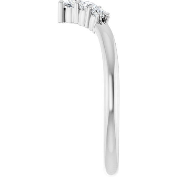 A sleek band with five channel-set diamonds. Each diamond measures 2.5 mm round, and they're G-H in color and SI2 - SI3 in clarity.