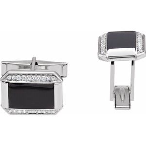 67345 / 14K White / Pair / Polished / 1/4 Ctw Diamond Cuff Links
