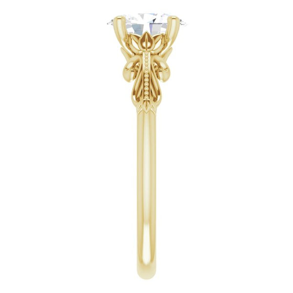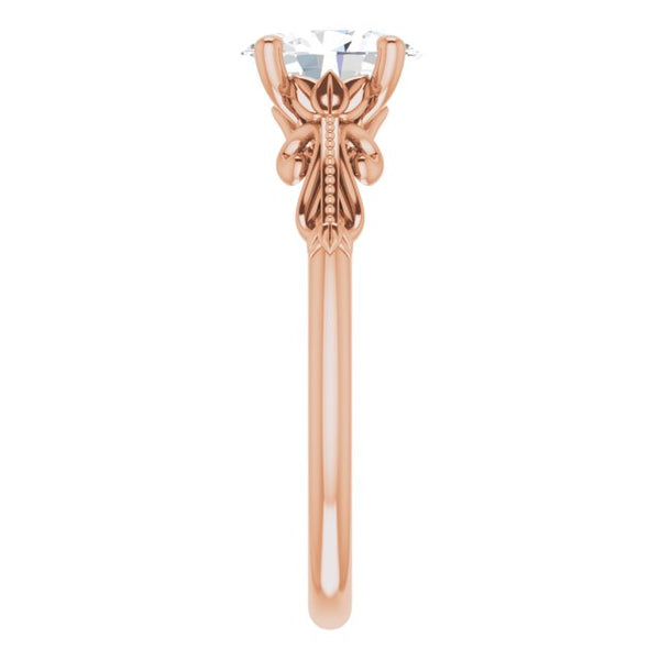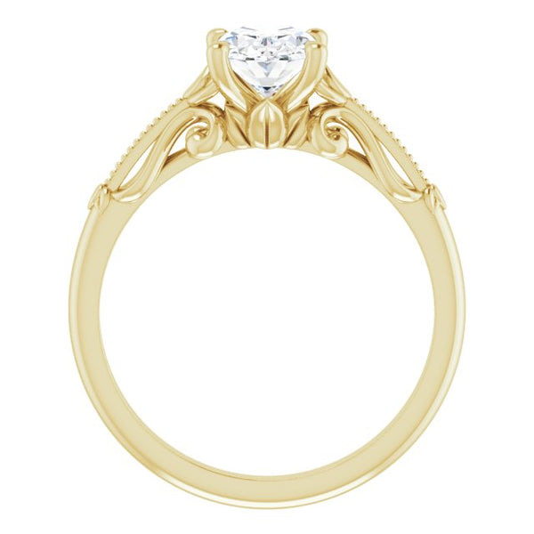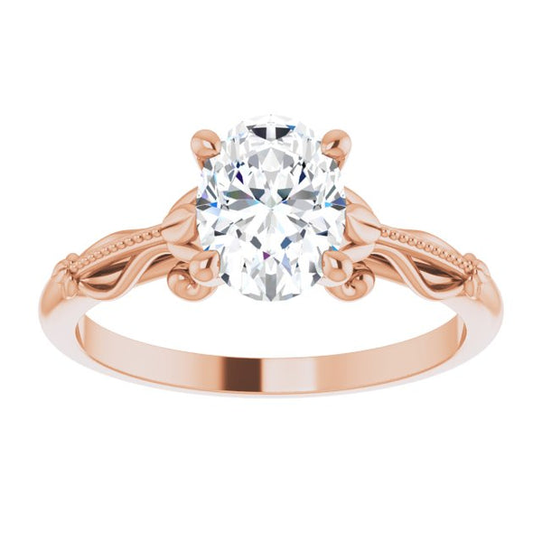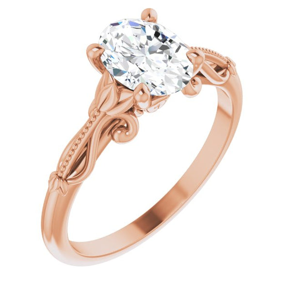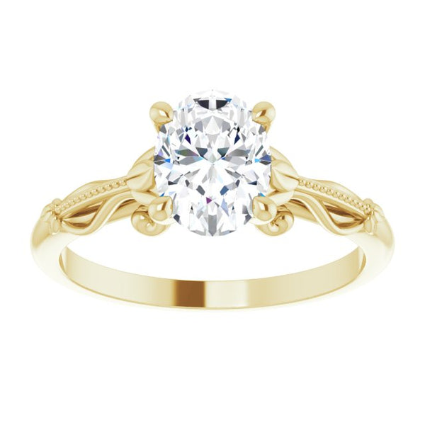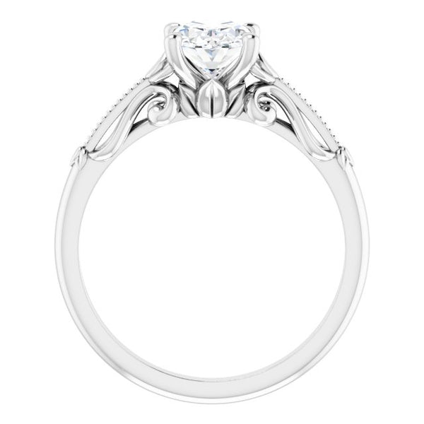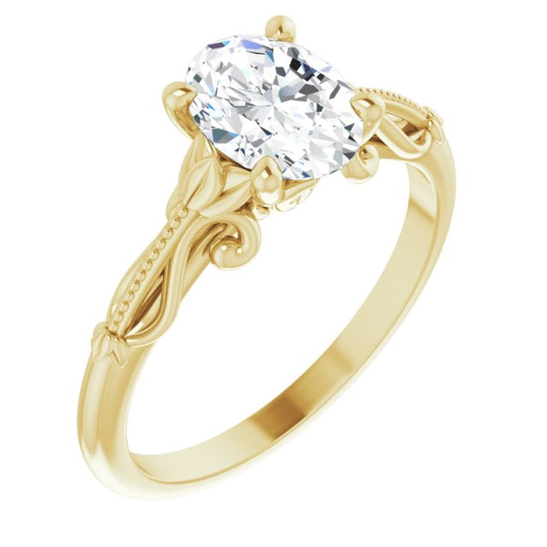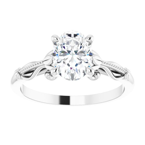 This organic solitaire (shown here with blue sapphire) complements the modern facets of any 8x6 diamond or gemstone beautifully!