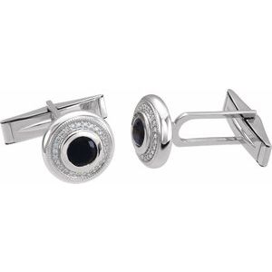 86426 / Cuff Links / Set / Natural Black Onyx / Round / 5 Mm / 14K White / Natural Diamond / Pair / None / Polished / Natural Onyx And 1/8 Ctw Natural Diamond Cuff Links