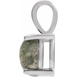 29494 / Pendant / Set / 14K White / Oval / Natural Moss Agate / 8 X 6 Mm / Polished / Natural Moss Agate 4-Prong Cabochon Basket Pendant