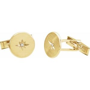 86427 / Cuff Links / Set / Natural Diamond / Round / 1.5 Mm / 14K Yellow / Pair / None / Polished / .03 Ctw Natural Diamond Star Cuff Links