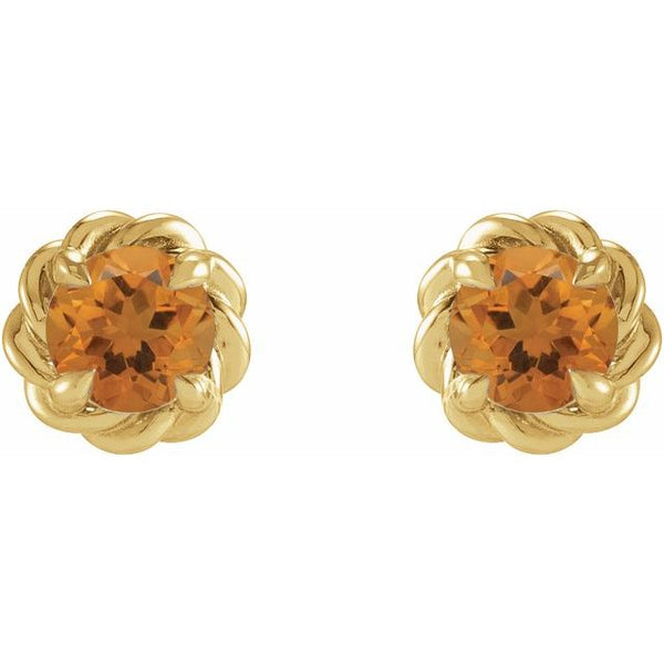 14K Yellow 4.5 mm Natural Citrine Claw-Prong Rope Earrings
