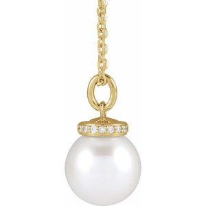 14K Yellow Cultured White Akoya Pearl & .04 CTW Natural Diamond 16-18" Necklace