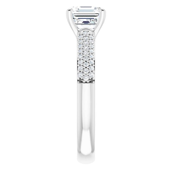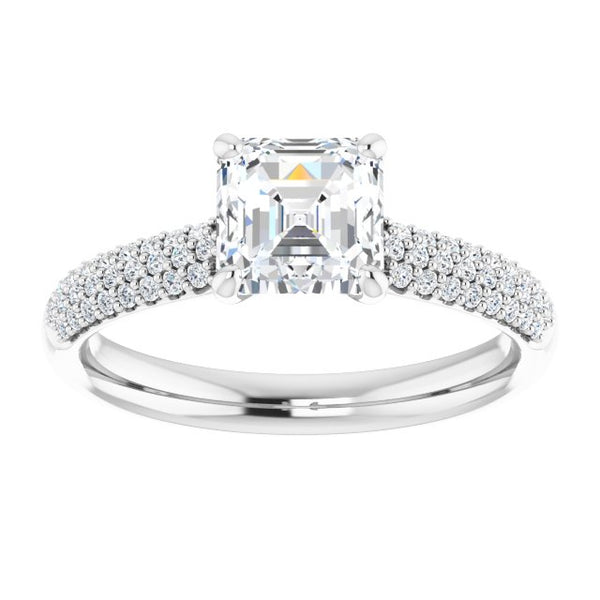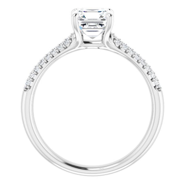This radiant engagement ring can hold either a princess cut diamond or gemstone.
