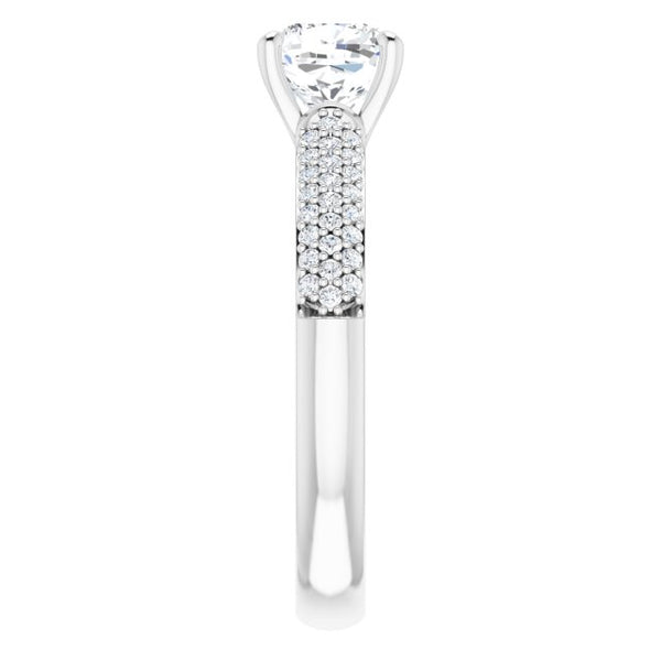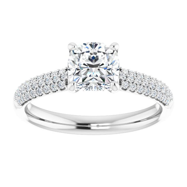This radiant engagement ring can hold either a princess cut diamond or gemstone.