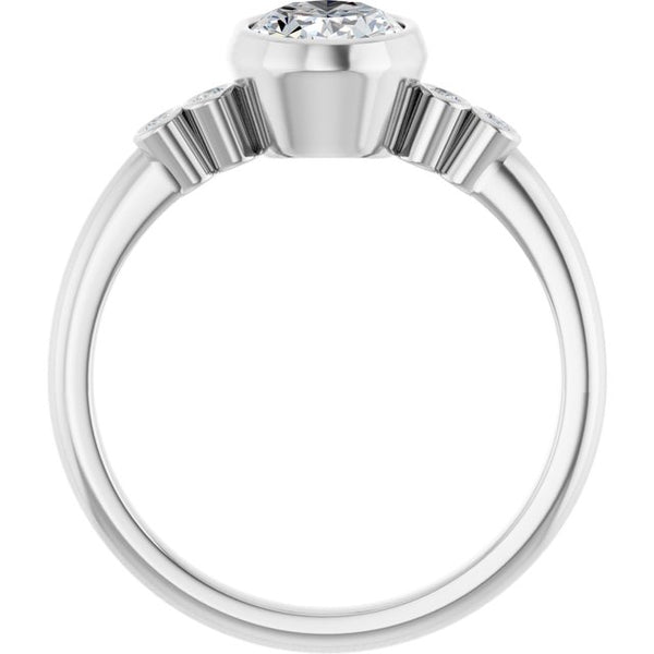 This radiant engagement ring can hold either a 1 carat oval diamond or gemstone.