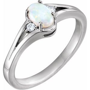 71937 / Ring / Set / 14K White / Natural White Opal / Oval / 6 X 4 Mm / Natural Diamond / Polished / Natural White Opal And .03 Ctw Natural Diamond Ring
