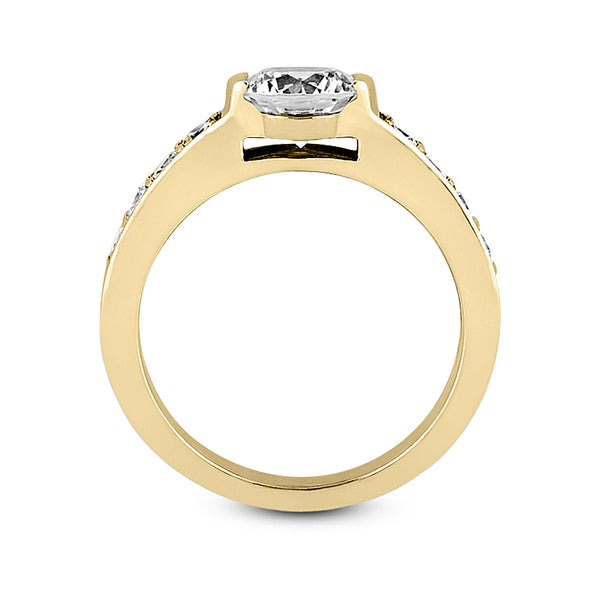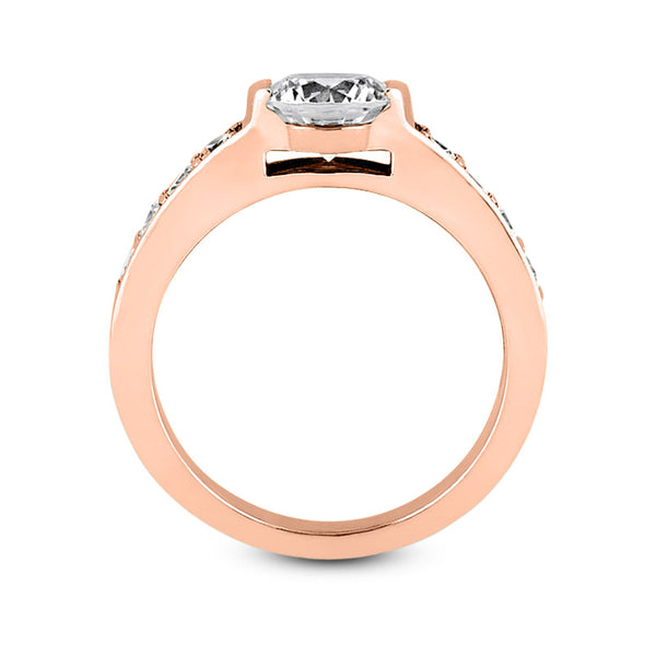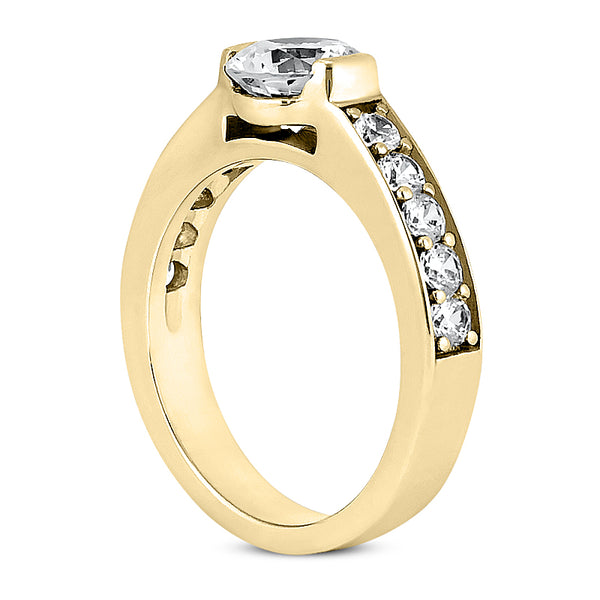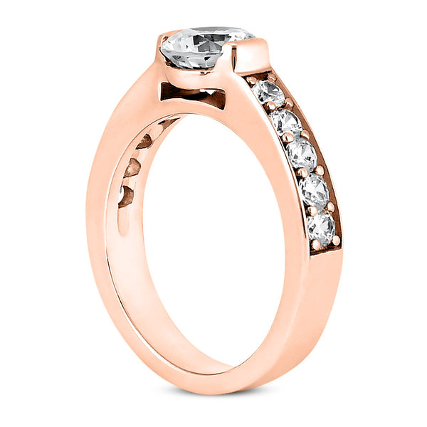 This modern band has elegant tension settings for a lovely 1-carat diamond or gemstone. Channel-set diamonds complement the modern look of this ring.